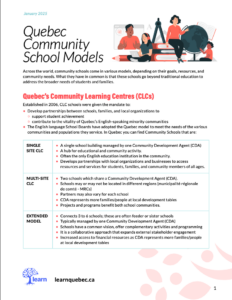 There are currently three models of community schools that have emerged in Quebec, each based on the needs of that
